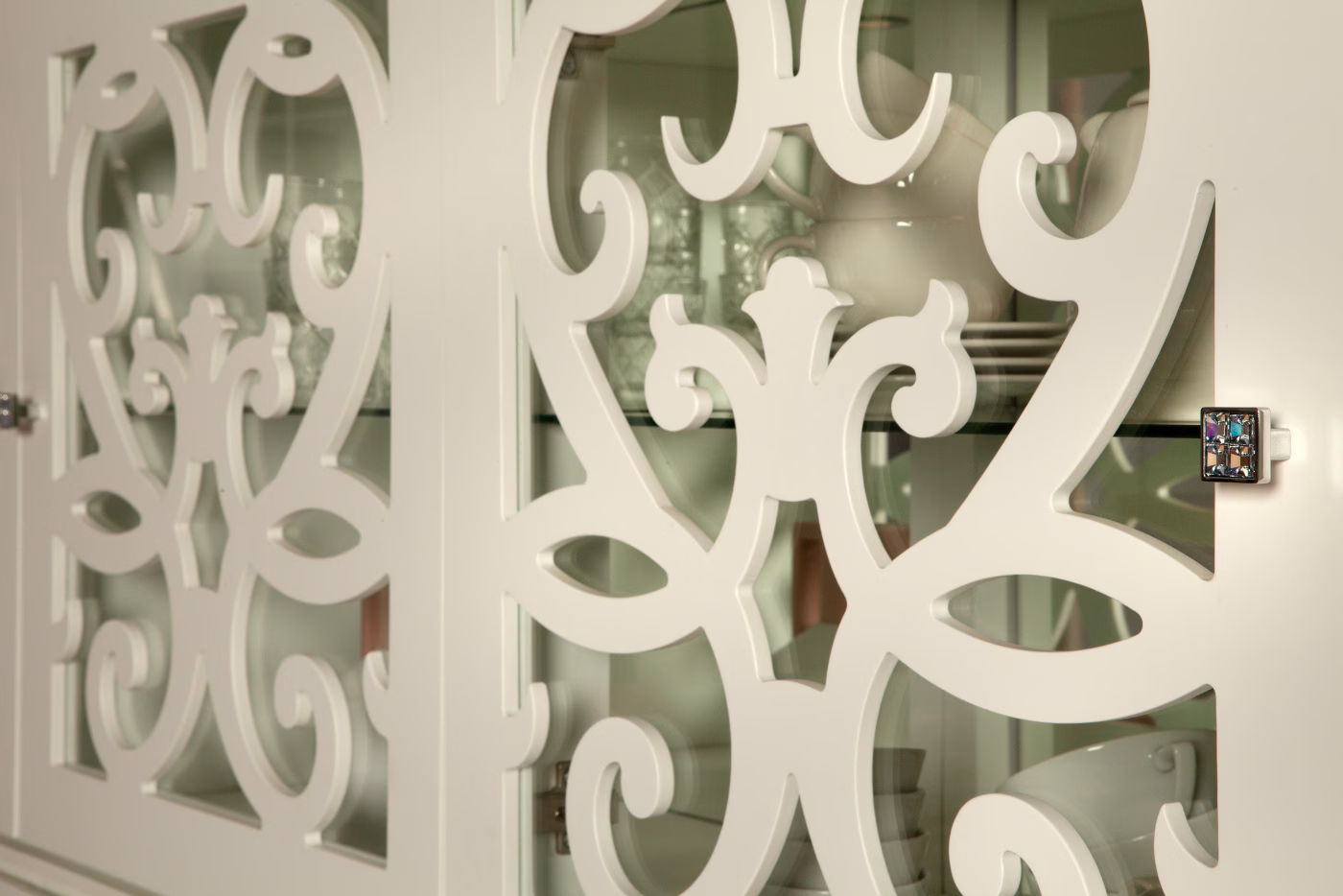 Paris 8351: 2×1 fretted doors with tempered glass; Dimensions: W:124 x D:40 x H:66 cm