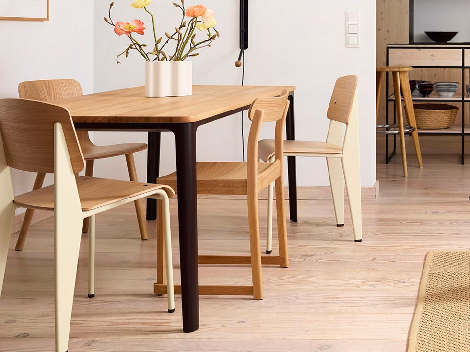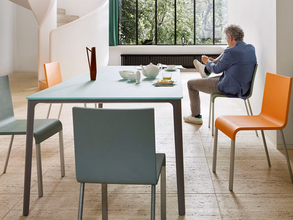 The elegant Plate Dining Table (2018) by Jasper Morrison subtly unites aesthetic elements and structural details in a timeless piece that appears both familiar and fresh.