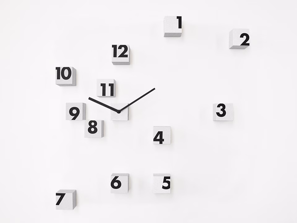 The most unusual feature of this clock lies in its entirely random application to the wall, hence the name “rnd_time”, where “rnd” is used to indicate the random factor. Wall clock, small cubes in nylon. Battery quartz movement. Small cubes may be assembled random on the wall.