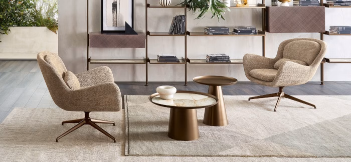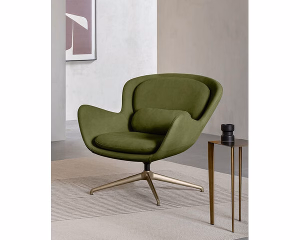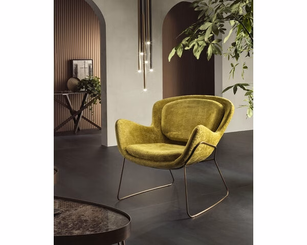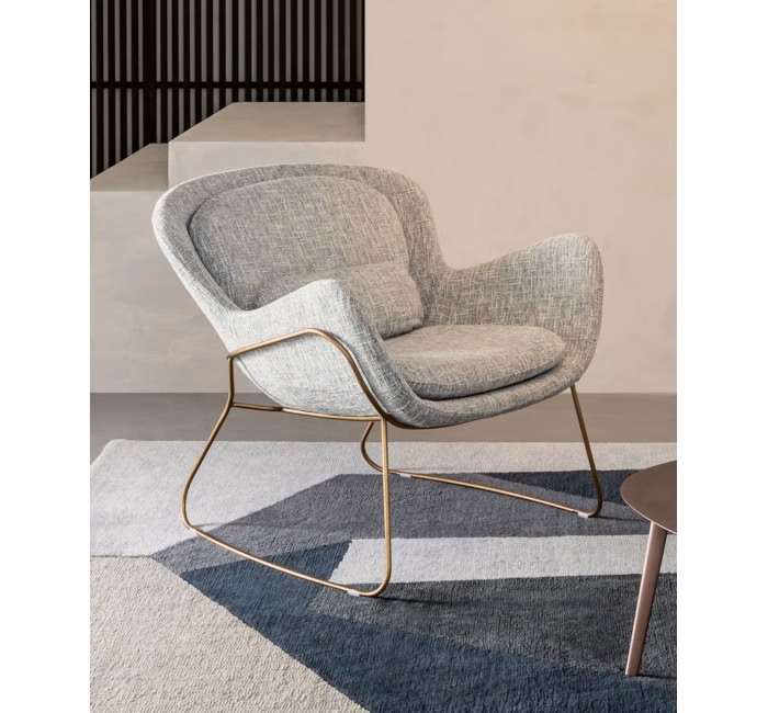The Meghan armchair makes a statement in any ambience with its proud, contemporary style that never goes unnoticed. Its soft, enveloping line, wide seat and backrest that form a soft curve enclosing the cushions are an invitation to relax and enjoy cherished moments with friends. Precise manufacturing, the quality of the Made in Italy label, and opportunities for customisation with a vast range of upholstery fabrics and bases make this an outstanding decor item