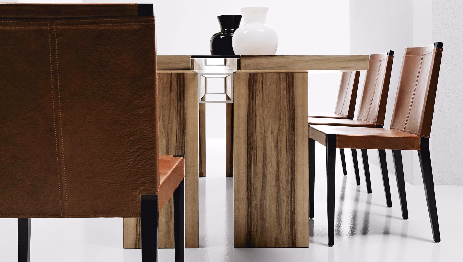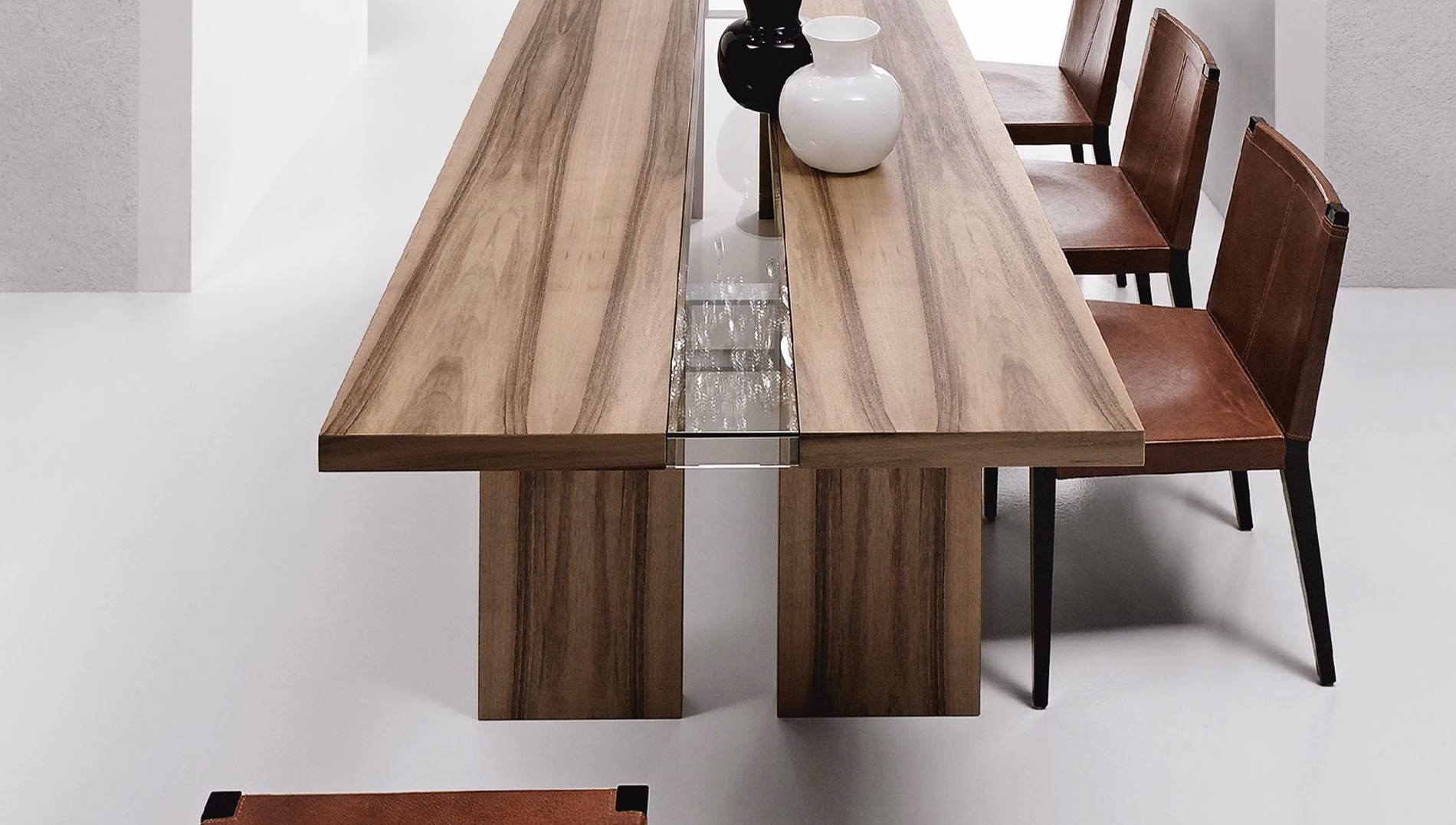 Rectangular table in European walnut, American walnut, oakwood heat-treated and