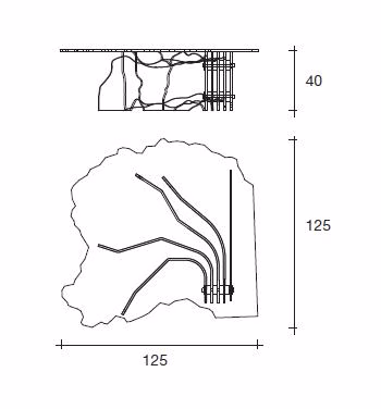 Base made of five 12 mm-thick hand-sculptured glass elements, four of which curved. Hardware in stainless steel. Sizes: |