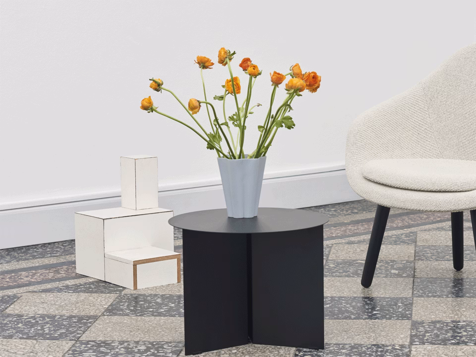 HAY’s Slit Table is a geometric steel side table inspired by paper origami techniques. The slim frame appears folded beneath the tabletop, creating a simple yet sculptural form that is reminiscent of traditional Japanese paper art. The Slit Table is available in a selection of different shapes and sizes and is offered in a variety of contemporary colours and finishes. Compact and versatile, it can be used on its own or arranged in clusters in diverse private or public settings.