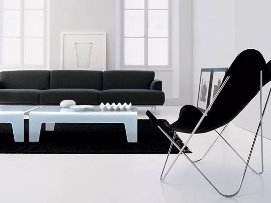 Frog tables are made from a single glass sheet curved and shaped with skillful technique. The purity of its design belies its exceptional strength for each setting and use, thanks to the use of a very thick bent glass