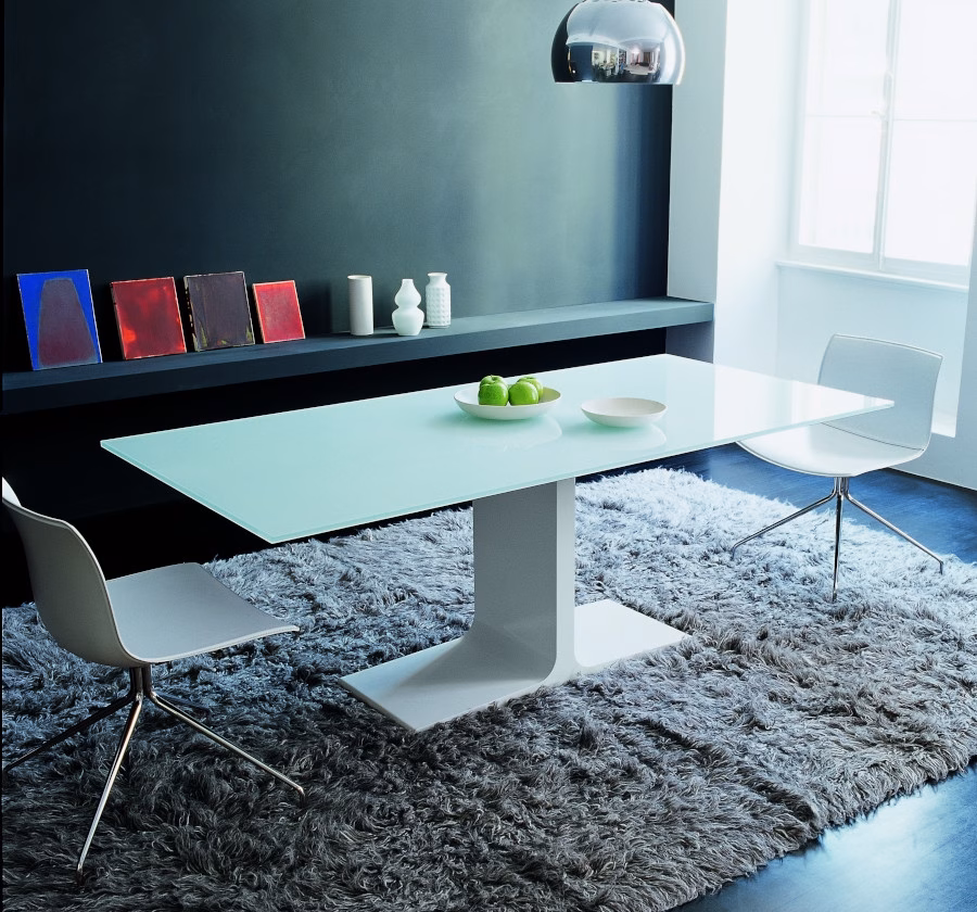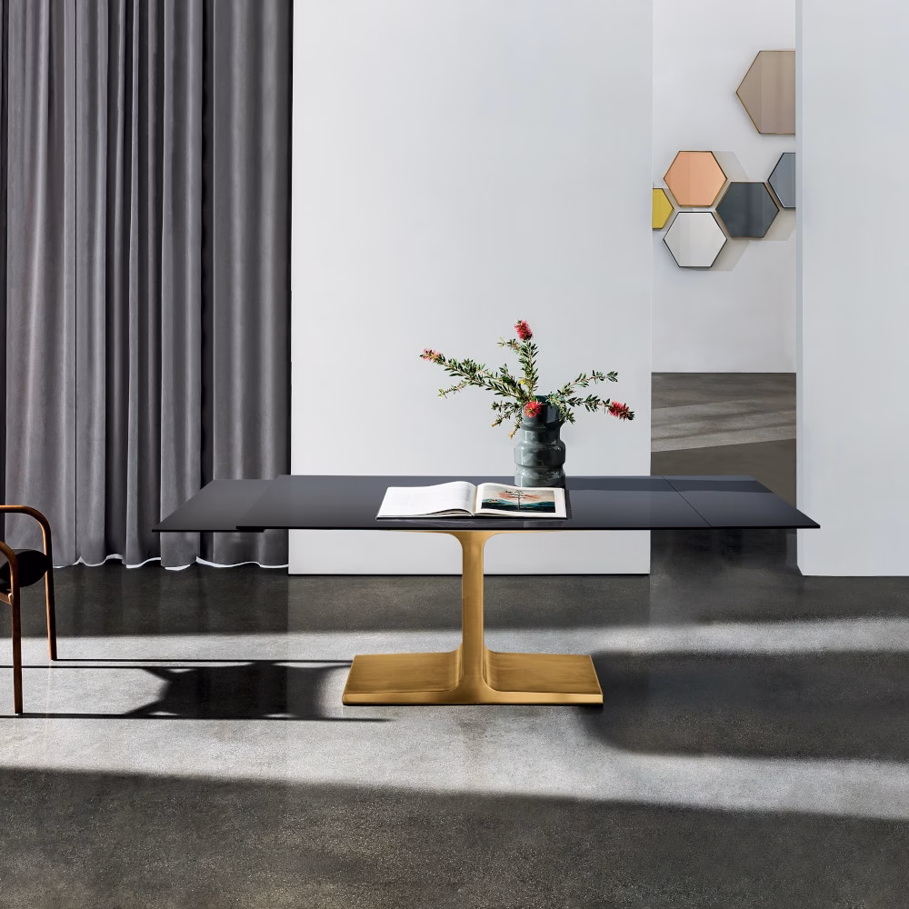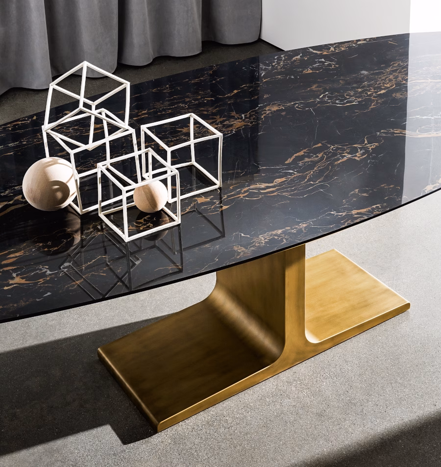 Palace dining table and its unique design become the outright protagonist of the living area, thanks also to the new shapes. An important element that sets the mood of the whole room.
