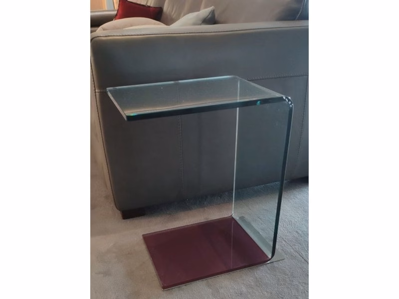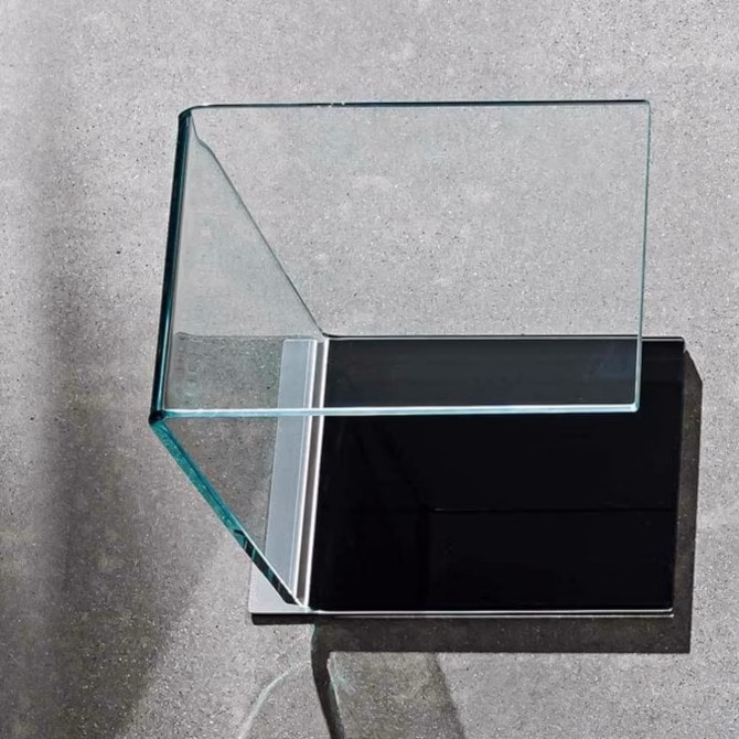 Swan is a highly original, multipurpose side table. Made of a single sheet of curved glass, it will provide an attractive addition to any modern decor. A steel baseplate accentuates Swan’s weight-bearing capacity and stability. Delicate transparency that seems to disappear into the air, or a brilliant and original combination of lacquered finishes. More finish options available. Please contact the store for details.