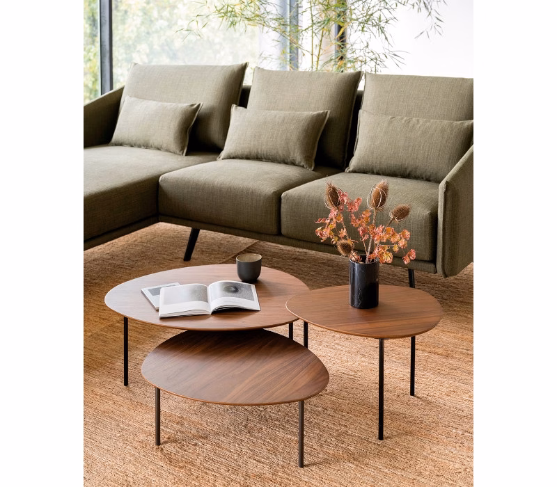 The Stua Eclipse coffee tables are a contemporary interpretation of traditional nesting tables. The essence of the design is the organic nature of the shape that can be combined to create various spatial patterns. The tables are light in appearance with a beveled edge, each table has three matt steel legs with foam pads on the feet. Eclipse comes in 4 table sizes and 4 finishes: oak, walnut, white and warm grey stained ash.