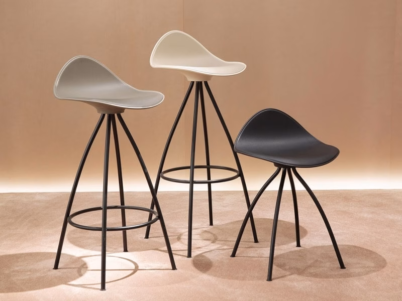 The stool’s four legged base, curves smoothly, offering a lightweight and stable structure.