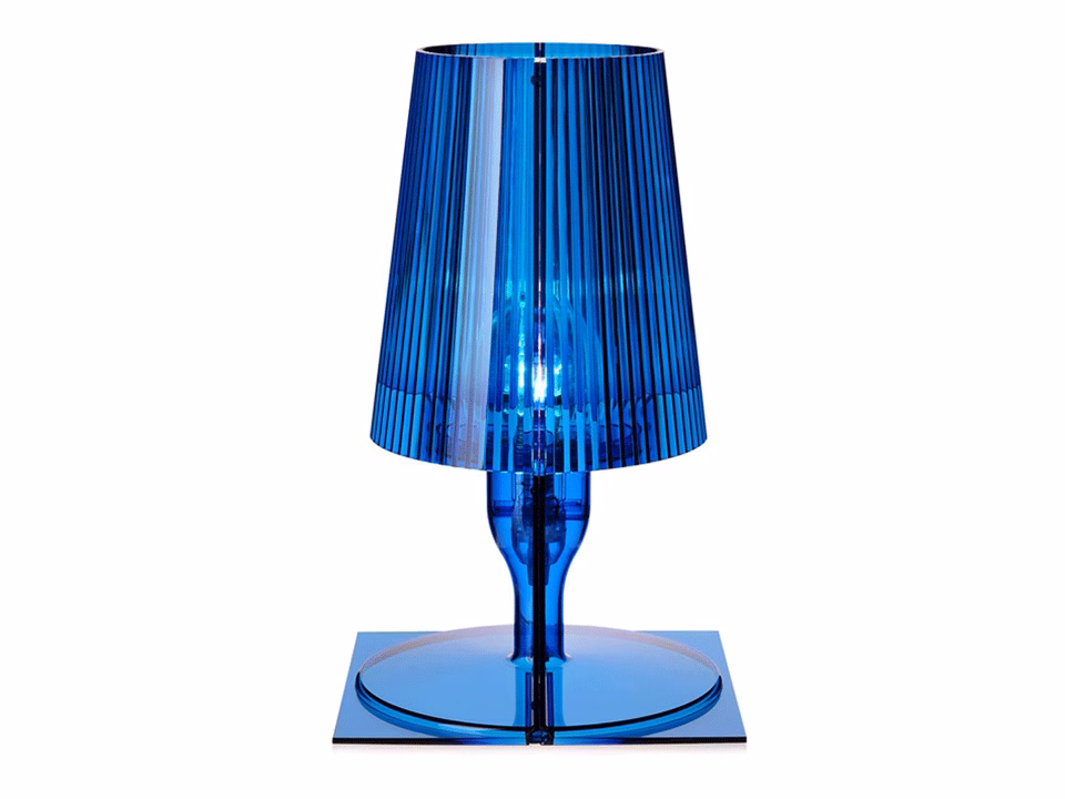 The classic image of the bedside lamp has been revisited by Kartell technology and transformed into an industrial product. Made of transparent or coloured injected polycarbonate, Take is available in various chromatic tones.
