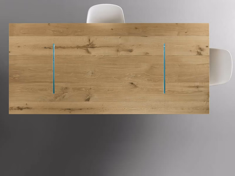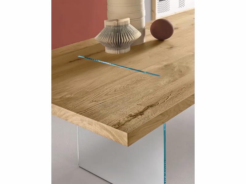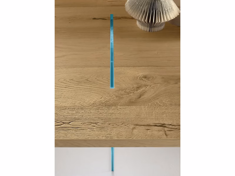 The tabletop is made with recovered oak beams processed to enhance the wood’s distinctive cracks and knots. An industrial process that promotes the recovery and redevelopment of top-quality raw materials.