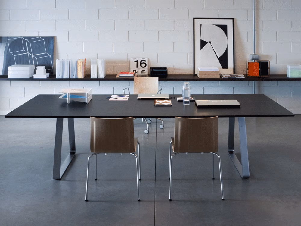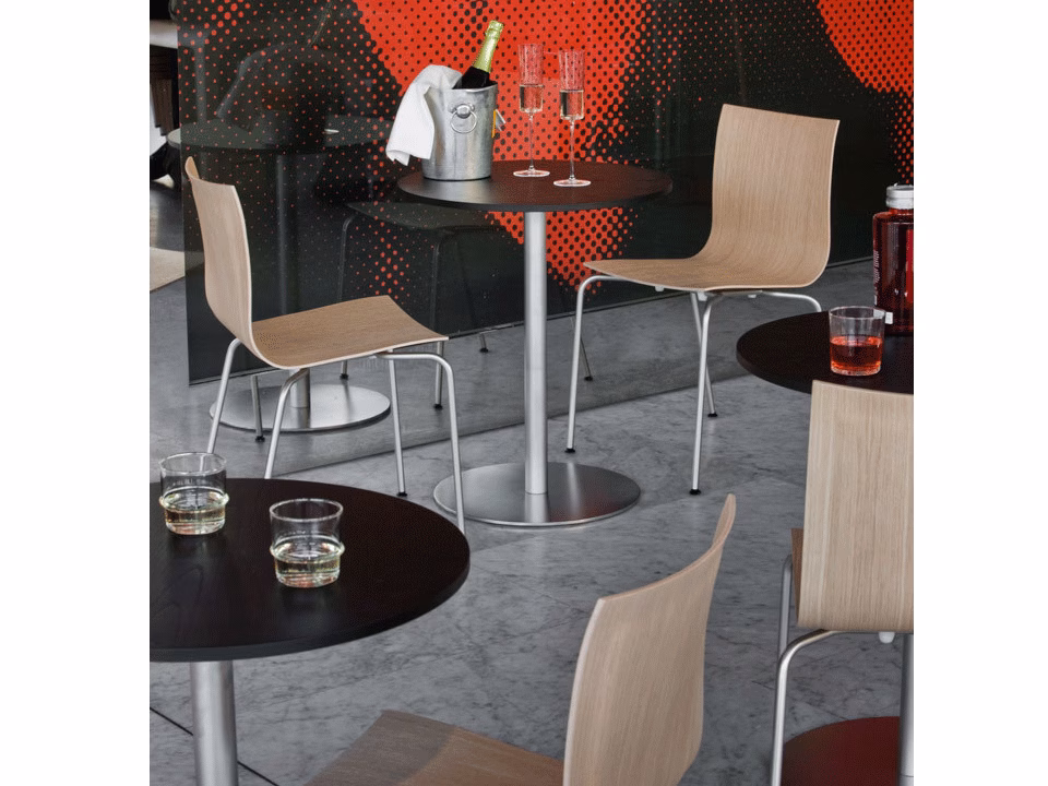 The rigorous slender lines of THIN highlight the seat detail, where wood acquires thickness in the central part. Without armrests, it is ideal for contexts with rigorous style yet also adapts to informal interiors.