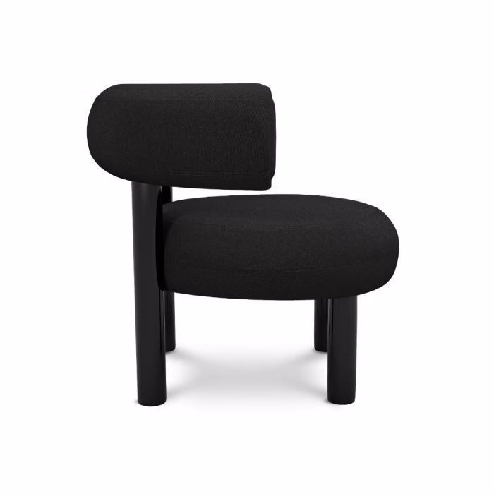 Designed to hug the body and allowing for multiple sitting positions, this lounge chair is upholstered using Bute’s dark brown woolen fabric. Fat is made from moulded foam with a metal leg launching in high gloss black lacquer and made to order upholstery. Manufactured in Europe, hand finished and upholstered by experienced craftsmen.