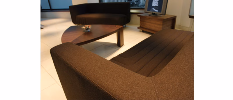 The Track sofa system is available in 15 different shape and size options. Its main feature is a unique deep quilting technique developed by this innovative English manufacturer. It can be upholstered in a variety of Kvadrat and Bute fabrics. Solid beech