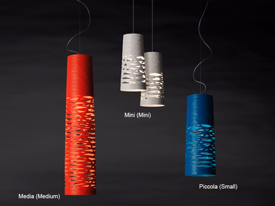 A nest of light made up of patterns and weaving acting as both frame and decoration together. The Tress Large suspension lamp is made using a craft-based process, winding a ribbon of composite material. Various colours interpret multiple personalities for a model that creates a charming visual focus.