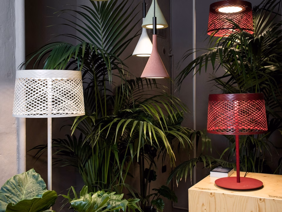 A formal concept of lightness, declined in a floor lamp with a thin stem and a characteristic woven diffuser. Twiggy Grid Reading is perfect for outdoor and indoor use.