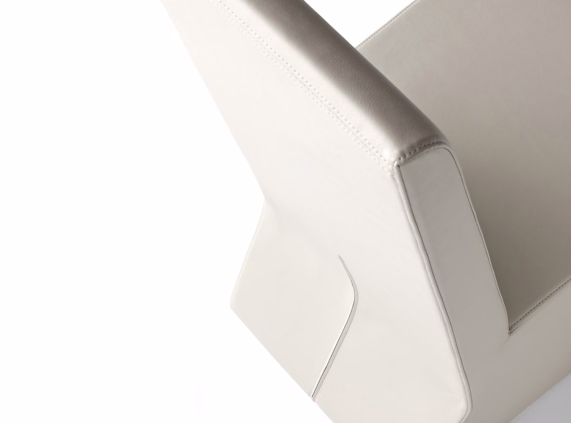 Go future fabulous with this sleek leather chair from Bross. Featuring a conceptual yet super-comfy design, the Twill is set to become a modern classic. It comes in cool ivory with an eye-catching seam detail at the rear.