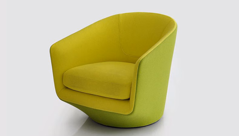 U Turns sits upon a discrete circular metal base that rotates smoothly through 360º. An internal steel frame and injection molded foam create engineered comfort and a tailored appearance.