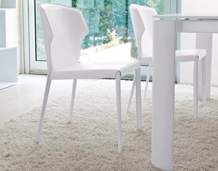 Chair with chromed steel frame and completely covered legs, seat and back in leather or hide leather covered as per our sample card.