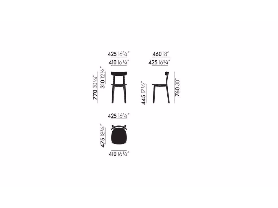 - L 42.5 x Depth 46 cm x H 77 cm – Seat: H 44.5 cm