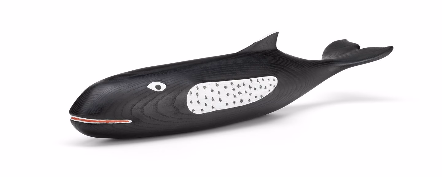 A prominent feature of the Eames House by Charles and Ray Eames was this wooden whale measuring over two metres in length. Its smaller reproduction, the hand-painted Eames House Whale by Vitra, is crafted from ash wood.